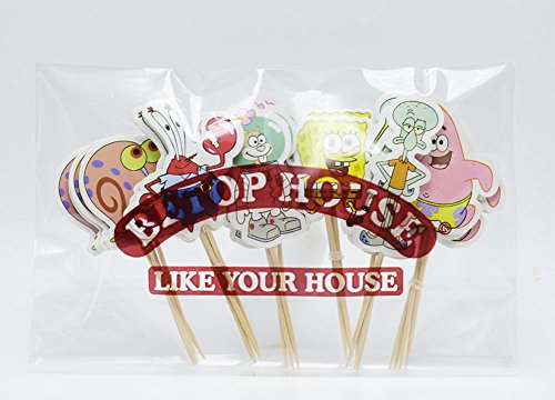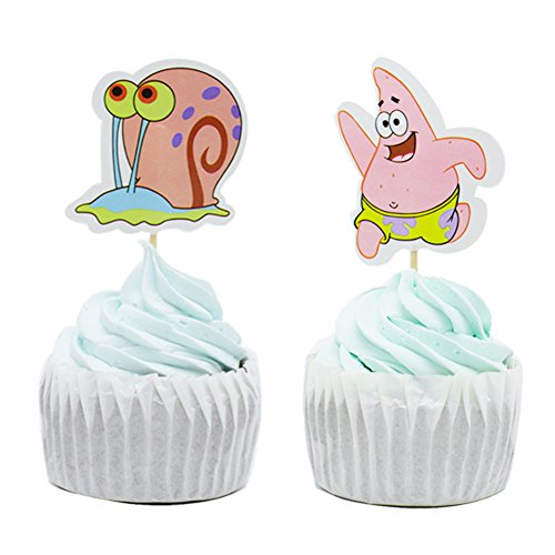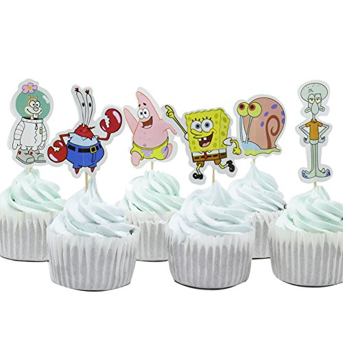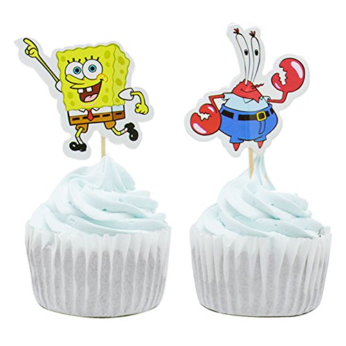 BETOP HOUSE Set of 24 Pieces The SpongeBob Themed Cupcake Topper Picks for Baby Shower Birthday Party