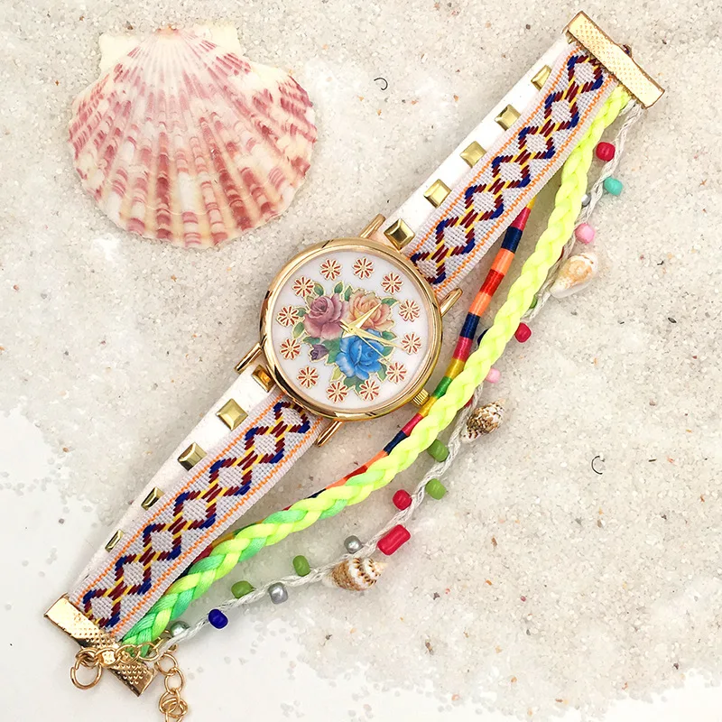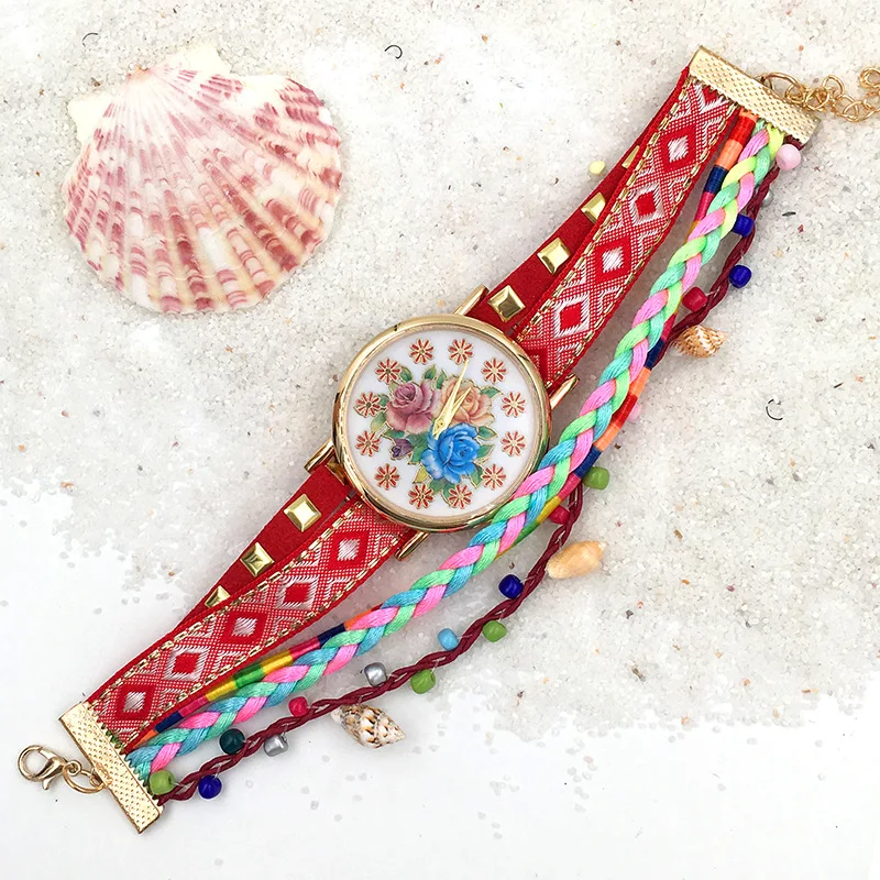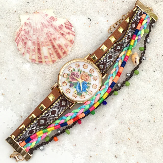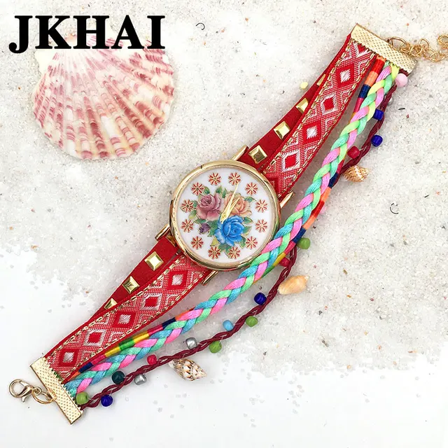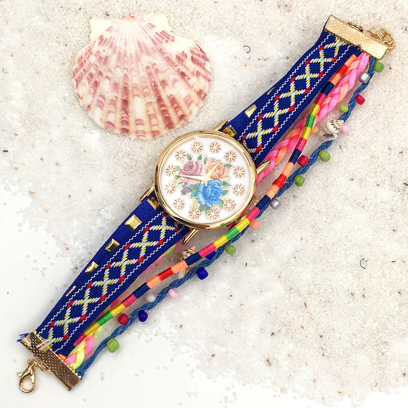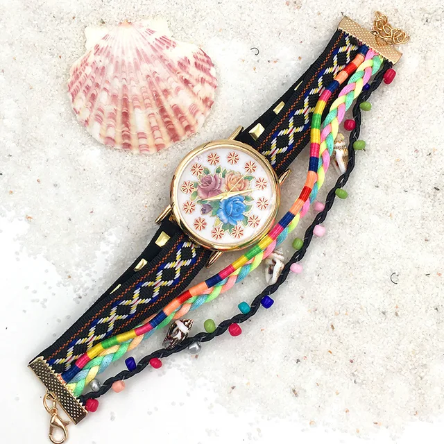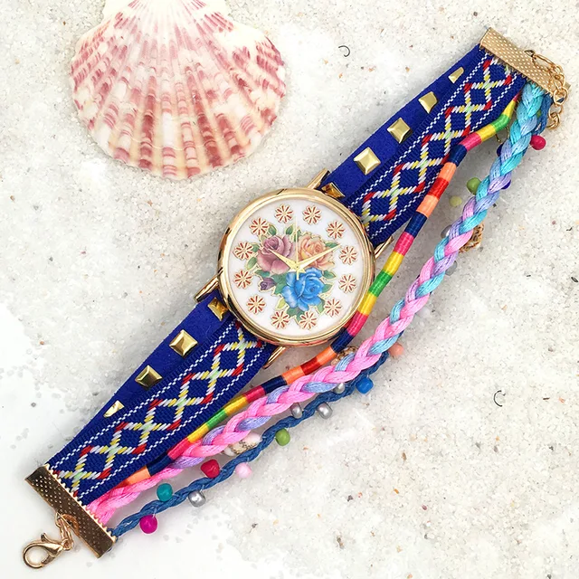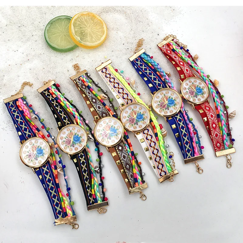 | [해외] 2017 새로운 민속 스타일의 펜던트 팔찌 시계 캔버스 리본 꽃 시계 패션 작은 신선한 테이블 |
