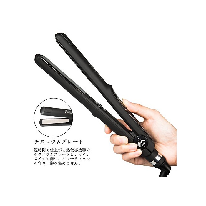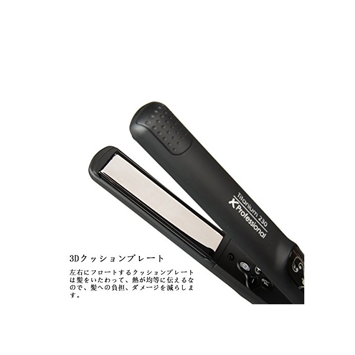 완전 살롱급,축모교정 레벨의 MAX230℃를 실현.티타늄 플레이트는 MAX230℃까지 가열되고, 머리카락에 광택을 주는 마이너스 이온을 만듭니다.