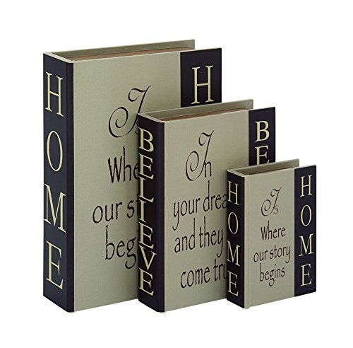 Deco 79 54041 Wood & Leather Bookbox Set of 3