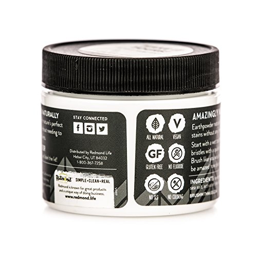 Redmond Earthpowder, All Natural Tooth and Gum Powder Bentonite Clay and Charcoal Teeth Whitener, Peppermint Charcoal