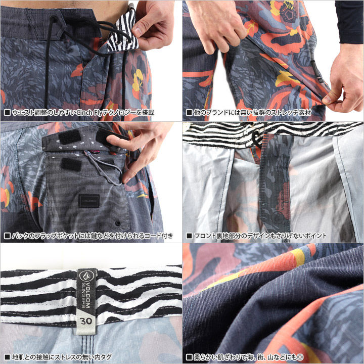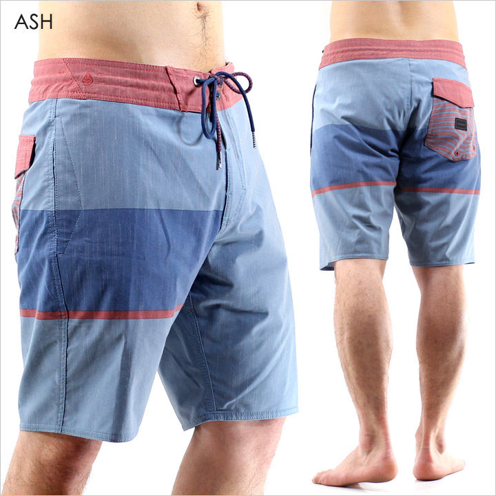 マットな素材感がややレトロな印象のボードショーツです。 大胆なデザインと細かいピッチで薄く入ったストライプ生地の素材感が、独特な雰囲気を醸し出す一本。 レングスは19インチの膝上丈。短めのレングスはビーチシーンでもトレンドのシルエットとなっています。 鍵などを通して収納出来るドローコード付きのバックフラップポケットもさりげない機能。 通気性、速乾性、ストレッチも良く、街穿きでもサラッと着用が出来る一本です。