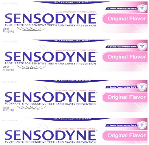 Sensodyne Toothpaste for Sensitive Teeth and Cavity Prevention, Maximum Strength, Original Flavor, 4-Ounce Tubes (Pack of 4)