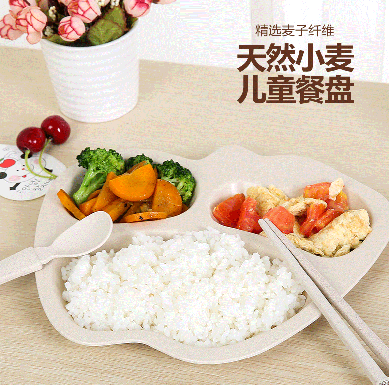 三格微波炉可用 学生创意可爱卡通幼儿园儿童分格餐盘
