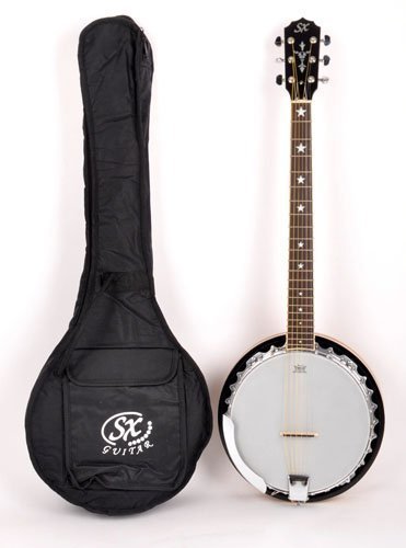 Studio : SX Publisher : SX Product Description This 6 string banjo is a breeze to play for guitar players. It features arched Australian red cedar back with a warm vintage sunburst finish, a beautiful headstock with pearlized inlays, chrome tuners and D'Addario strings. Note: To protect the bridge during shipping we ship it uninstalled. String guages: .010, .012, .021, .030, .041, .051. Overall length, including the strap button: 39". Width of the neck at the nut: 1 5/8". Weighs only 6.5 pounds. Please note that the bridge must be installed by user when banjo is received (it is included in the box). 0