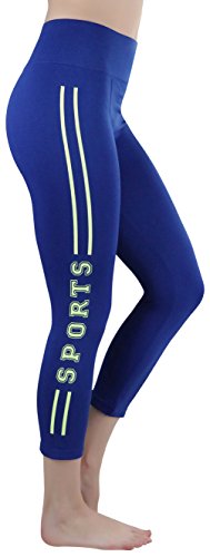 -. Feature : Full length sports legging with SPORT graphic logo on one side, this sports legging brings functionality and style together. The two stripes on each leg elongates the legs for more slimmer leg appearance while the cute SPORT logo makes this legging more fun and active. CaP.R.I Length. Form Fitting. / Materials: 90% Polyester, 10% Spandex / Machine wash OK. Cold water recommended. Do not bleach. Hang to dry / One Size Fits Most / Colors: Black, Blue, Fuchsia, Grey or Navy