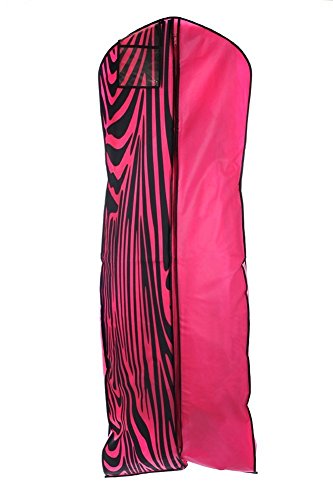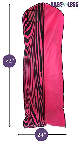 -. Binding : Kitchen -. Brand : Bags For Less -. Color : Hot Pink with Zebra Print -. EAN : 0610370573044 -. Feature : New Trendy Design. Hot pink with zebra stripe design. Be the first to own this bag!!! / Breathable, soft, clothlike durable material / Reinforced hanger opening, heavy duty center zipper / Hanging clear window pouch / 24" wide x 72" long x 10" side gusset -. Label : Budget Bags -. Manufacturer : Budget Bags -. MPN : 72PRM HP ZEBRA-CA -. PartNumber : 72PRM HP ZEBRA-CA -. ProductGroup : Home -. ProductTypeName : HOME -. Publisher : Budget Bags -. Size : 24" wide x 72" long x 10" -. Studio : Budget Bags -. Title : Bags for LessTM Breathable Wedding Gown Garment Bag Hot Pink /Zebra Print -. UPC : 610370573044