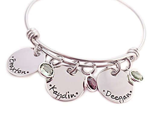 -. Title : Bangle Bracelet With Custom Names And Birthstones - Hand Stamped Jewelry
