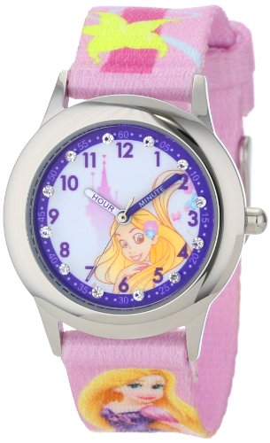 -. Binding : Watch -. Brand : Disney -. Color : multi/none -. Department : girls -. EAN : 0843231071124 -. Feature : Round Time Teacher Stainless Steel Watch with Disney's Rapunzel character on dial. / Meets or exceeds all US Govt requirements and regulations for Children's watches. / Recommended for Ages 3-7 years old. Includes a Time Teacher Punch Out clock for Parents to Teach their Children. / Accurate Japanese Quartz movement, scratch resistant mineral crystal, P.R.Inted Nylon strap / Water Resistant to 99 feet: withstands rain and splashes of water, but not showering or submersion. / 1 Year Limited Manufacturers Warranty -. Label : Disney -. Manufacturer : Disney -. Model : W001041 -. MPN : W001041 -. PackageQuantity : 1 -. PartNumber : W001041 -. ProductGroup : Watch -. ProductTypeName : WATCH -. Publisher : Disney -. ReleaseDate : 2013-07-08 -. Size : NO SIZE -. Studio : Disney -. Title : Disney Kids' W001041 "Rapunzel Glitz" Stainless Steel Time Teacher Watch -. UPC : 843231071124