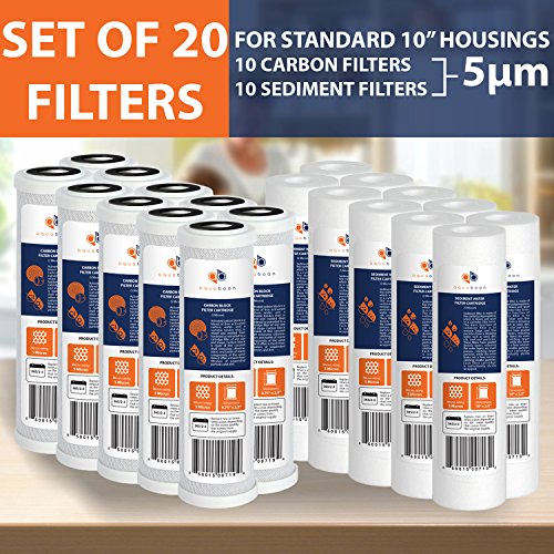 Water Filter Set of 20 Sediment/Carbon 5 Micron Water Filter Catridges by Aquaboon