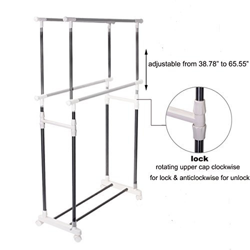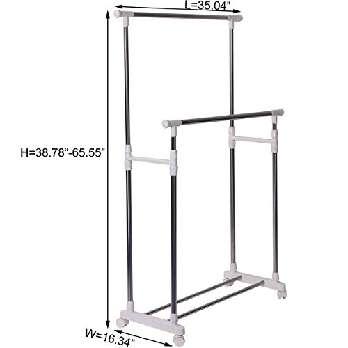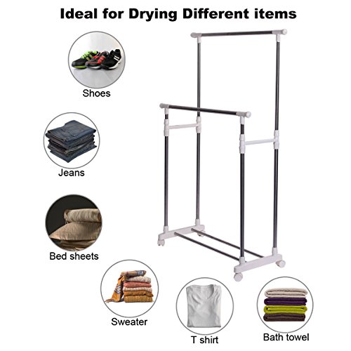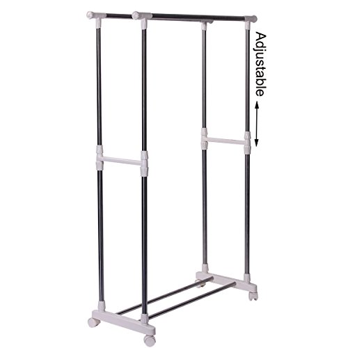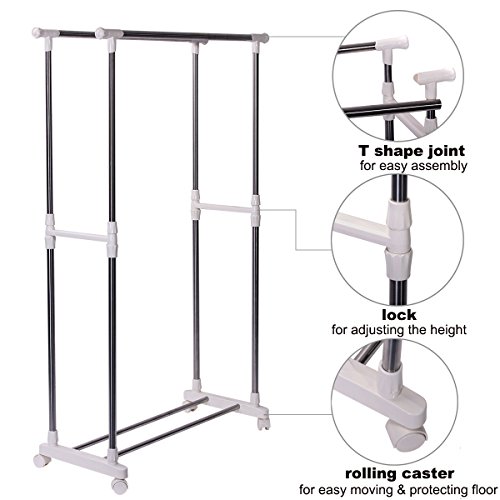 This rolling garment adds more hanging space to your home to solve your storage needs. Ideal for storing special occasion or seasonal garments or hanging freshly laundered clothing in your laundry room. Shelf at the bottom of the rack provides extra more storage space for shoes, bags, folded garments,etc.As clothes dryer, it is an affordable, energy-saving solution for laundry drying needs of drying different items. It naturally dry garments with air circulation and no power supply required, which means lower overall costs when it comes to monthly energy bills. It also helps keep fabric look better and last longer.