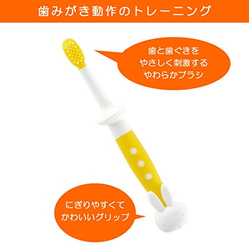 (8カ月から用)歯みがき動作のトレーニング。やわらかブラシが歯と歯ぐきを刺激します。
