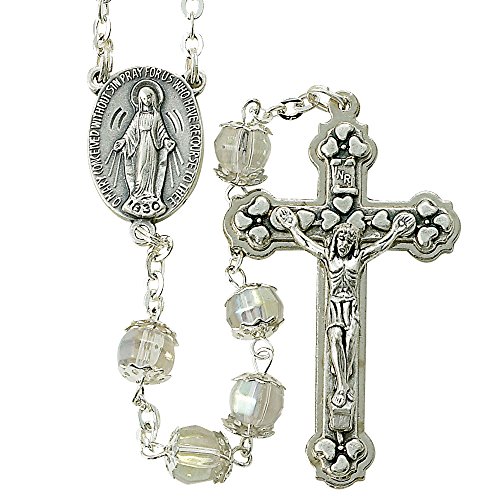 -. Title : Capped Glass Prayer Bead Rosary with Miraculous Medal Center, 35 Inch