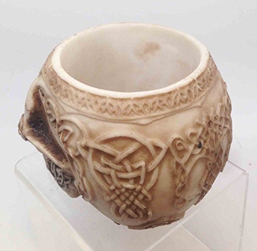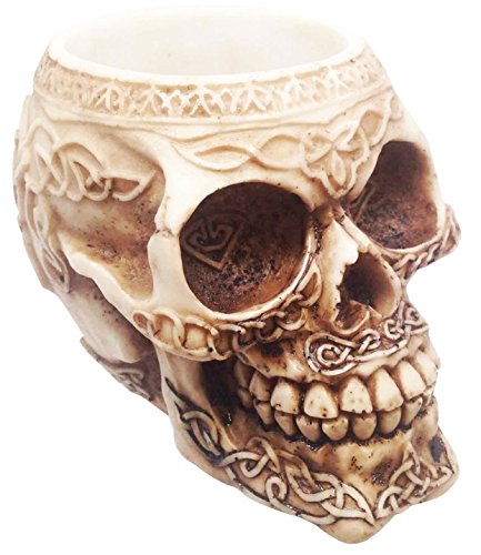 TRIBAL TATTOO SKULL PEN STATIONERY HOLDER RESIN FIGURINE SKELETON STATUE by ATL