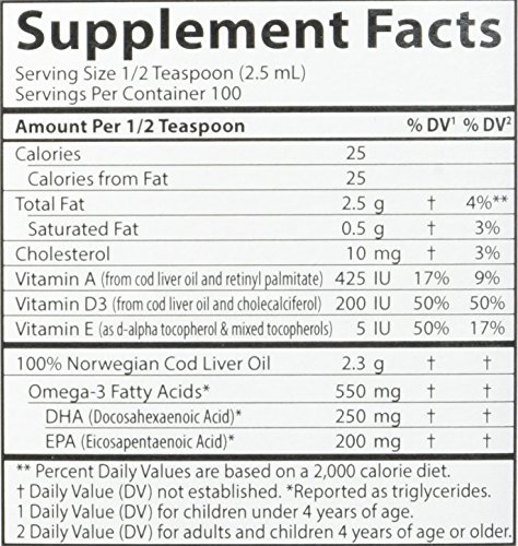 ReleaseDate : 2017-04-26 Studio : Carlson Labs Publisher : Carlson Labs Binding : Health and Beauty Product Description Carlson for Kids Norwegian Cod Liver Oil liquid in lemon flavor has received numerous awards for its taste and quality. A single half-teaspoon provides 550 mg of omega-3s, including EPA and DHA, which support heart, brain, vision, and joint health. To ensure maximum freshness, we closely manage our Cod Liver Oil for kids from sea to shelf. We source the highest quality Arctic cod off the coast of Norway using traditional, sustainable methods. The same day they're caught, our cod are transported to a highly-regulated Norwegian facility for processing and purification. Kid's Cod Liver Oil is bottled with a touch of natural vitamin E to prevent oxidation. It's then shipped to us and is tested by an FDA-registered laboratory for freshness, potency, and purity. Help your kids get the omega-3 nutrients their bodies need for optimal health. 0