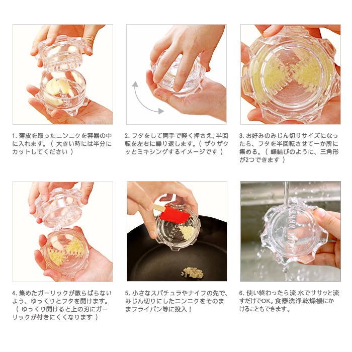 ■아크 트레이딩 넥스트 트렌드 마늘 트위스트 마늘의 채 썲을 편안하게 할 수 있는『 마늘 트위스트 3.0 』슬림한 칼을 위하에 크로스 컷 시키는 특허 취득 기술에 의해신속하게,게다가(더구나) 깨끗한 채 썲을 만들 수 있는 것입니다.둥근 용기의 형태는,채 썲으로 한 소재를 구하기 쉽고, 요리로도 낭비 없어 사용할 수 있어 에코.마늘 조리 넥이라고도 하는 냄새로 손이 냄새나지는 무사히,도마 왜냐하면 더럽히지 않습니다.이것이 만나(맞)으면,그만 즐거워 마늘 요리가 등장하는 기회가 증가할 것 같다입니다.
