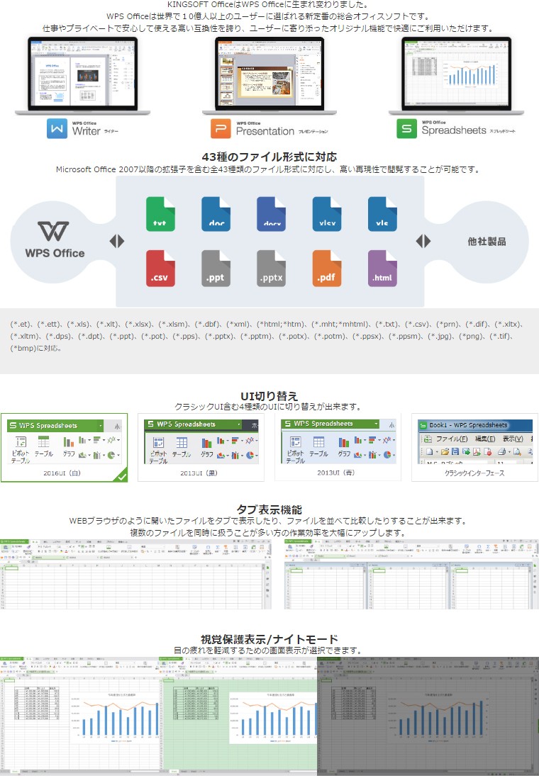| ☆オプション説明☆ ◆WPS Office Standard Edition※今だけ無料で付属! ![]() ![]() ・Microsoft Officeと高互換の総合オフィスソフトとなります。 ・特徴として、☆見た目が同じ、☆操作性が同じ、☆保存形式が同じです。 ・最新版WPS Office Standard Editionでは、Microsoft Office 2007から使われている保存形式(.docx、.xlsx、.pptx)が使用可能に! ・PCのほか、Android、iOSでも使用可能です。 ※ご注意点※ 1.シリアルコード記載のはがきサイズ紙のみのお渡しとなります。 2.ソフトウェアは体験版をWPSのホームページよりダウンロードしていただく必要がございます。 3.ソフトウェアのインストールはお客様ご自身にて行っていただく必要がございます。 4.体験版インストール後、上記シリアルコードをご入力ください。 ◆筆まめ&画像編集ソフト※今だけ無料で付属! ・はがき作成ソフト「筆まめ ベーシックVer.25」と画像編集ソフト「Zoner Photo Studio 17」のお得なセットです。 ・こちらのソフトは、お客様でのソフトウェアダウンロード、シリアル入力、インストールが必要となります。 |