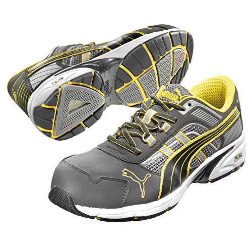Studio : PUMA Publisher : PUMA Binding : Apparel Product Description Puma Safety Pace SD Low Safety Toe Shoes. Puma Safety is here to change the game when it comes to job-ready shoes. Just take a look at this pair and you'll never suspect they're hiding all the safety features your jobsite demands. Wear them 9-5 then out after work and no one will know they're your "work shoes." You might even mistake them for your favorite pair of gym shoes! They've got great athletic style, plus a tough, protective safety toe and a heat-resistant outsole that will stand up to brief contact with surfaces up to 572 degrees F! That's pretty hot! Plus, they're also static dissipative "SD" and they're all-day comfortable, too. They're made to keep your feet cool and dry, through even the longest shift on the hottest day of the year. Safety first: Leather with breathable Sandwich-Mesh uppers for plenty of breathability; Composite safety toe; BreathActive lining; evercushion GEL motion insole with open-cell design keeps you cool and dry by wicking moisture away and drying quickly; Static dissipative "SD"; Heat-resistant, slip-resistant outsole; MOTION with duoCELL and Torsion Control System outsole for support and stability; Wide width for comfort. State Color and Size. Order yours today! Men's Puma Safety Pace SD Low Safety Toe Shoes 0