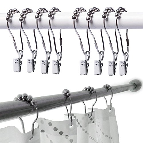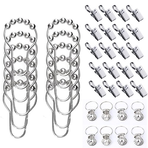 12 shower curtain roller hooks for hanging any standard shower curtain, Package Content : 12 X Shower Curtain Rings Hooks, 20 X Clips,8 X Seashell Clips