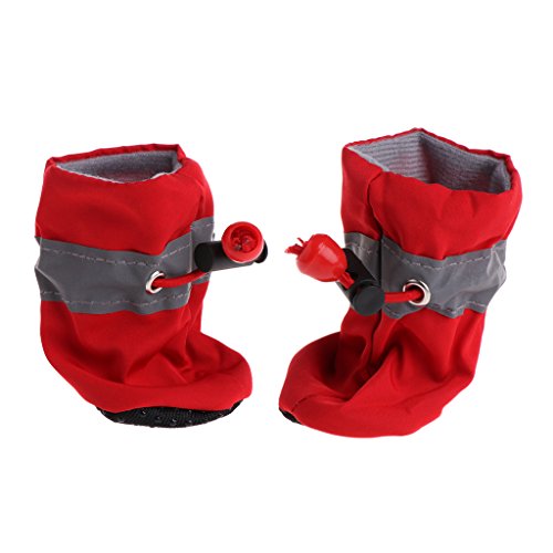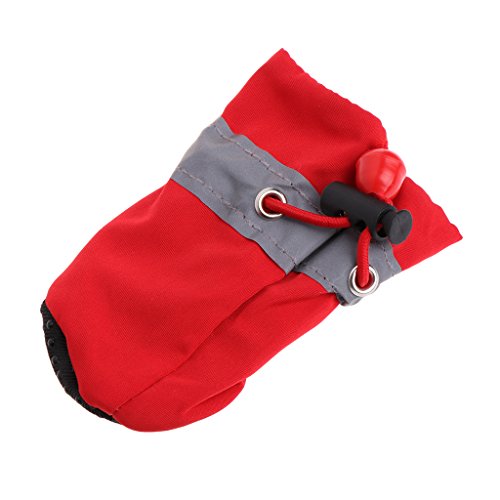 -. Feature : Quantity: 1 Set (4 Pcs). / Color: Blue/Red/Black. / Material: Waterproof cloth. / Dog Waterproof shoes,do not proof heavy rain, it is better to wear it indoors and room. / 1# Shoes Length: 3.5cm Shoes Width: 2.5cm Suitable for Weight of Approx.0.5-1Kg dog.