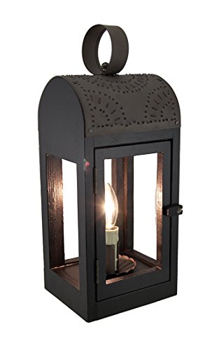 -. Feature : 14 1/4 Inches Tall, 5 1/2 Inches Wide, 4 3/4 Inches Deep / Made of Wood and Tin / Hand Punched Accents / Weathered Tin Finish / Takes Up to a 40 Watt Candelabra Bulb (Not Included)