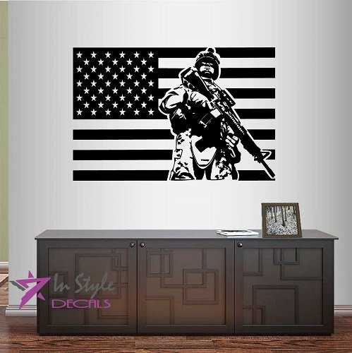 -. Binding : Kitchen -. Brand : In-Style Decals -. EAN : 0738964967052 -. Feature : Decals are fully removable but not reusable. Decals made of one solid color, there is no background (color of background is color of your surface). / In-Style Decals is an in-house vinyl decal shop. We use only high quality materials and manufacture our products in the USA. All our designs belong to us and you can buy them only at our In-Style Decals Amazon store. / Please choose 1 color from our color chart and message it to us or this decal will be shipped in COLOR AS SHOWN ON PICTURE. / Real decal sizes are usually from 22"X22" to 22"X35" (depends on design). Pictures can be bigger for showing purposes. / Perfectly fit for any clean, smooth, flat, light-textured surface. Pleases read Product Description. -. Label : In-Style Decals -. Manufacturer : In-Style Decals -. Model : 79 -. ProductGroup : Home -. ProductTypeName : HOME -. Publisher : In-Style Decals -. Studio : In-Style Decals -. Title : Wall Vinyl Decal Home Decor Art Sticker Flag USA Soldier Military Man Army Weapons Serviceman Fighter Guy Room Removable Stylish Mural Unique Design For Any Room Creative Design Logo House -. UPC : 738964967052