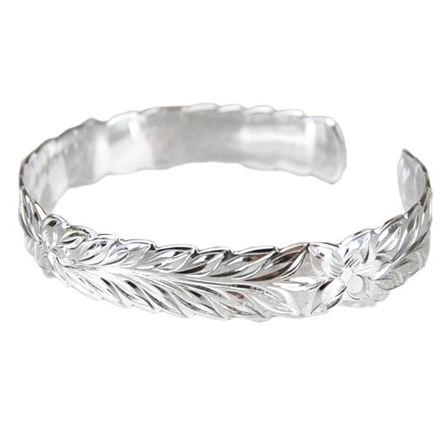 -. Feature : 【ハワイより直輸入】プルメリアと美しく流れるようなスクロール(波)の代表的な定番柄のフリーサイズタイプ。 / 【デザイン特徴】 優雅なフォルムに合わせたカットアウトエッジ(縁)彫りが模様の美しさをさらに魅力的に惹きたてるタイプです♪ / 【込められた願い】プルメリアは魅力運や健康運 、マイレの葉は「平和」「縁結び」などの大切な人との絆がという意味が込められています♪ / 【Silver 925】 価値ある純銀のスターリングSilver925素材だから安心保証。 / 【商品サイズ】 お手元になじむ人気の10mm幅 、男女兼用フリーサイズ ハワイアンジュエリーの初めてな方にも最適♪