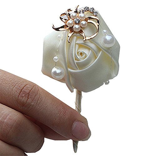 S_SSOY Boutonniere Bridegroom Groom Men's Boutonniere Groomsmen Boutineer Pin Corsage Flower for Wedding Homecoming Prom Suit Decor 1 Pcs