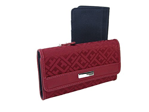 Product Description 2 Piece Set = 1 Wallet and 1 Checkbook Cover Description: It measures 7 inches by approximately 4 inches. The interior contains 8 credit card slots, 2 larger pockets for cash, an ID window, a carbon copy flap and a pen holder. It also has a navy blue removable checkbook cover with 4 additional credit card slip pockets. Tag Information: 6934858 602 Wallet 0