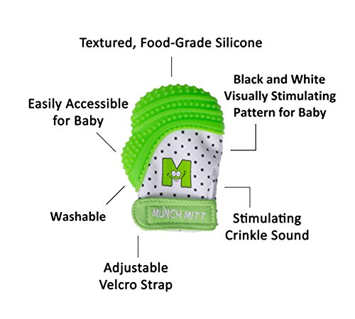 Munch Mitt® Teething Toy Stays on Baby’s Hand is Self-Soothing Entertainment and Gives Pain Relief from Teething plus it’s an Ideal Baby Shower Gift that...