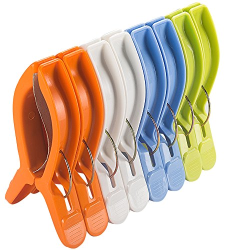 - Clips secure towel to the frame of most chairs with rounded jaws. The strong beach towel clips in fun bright colors keep your towel from blowing away when you sleep in beach or lawn chair.