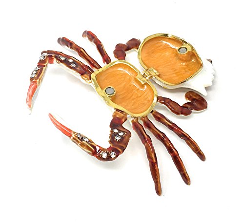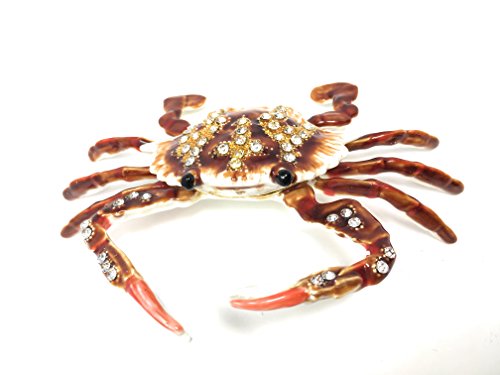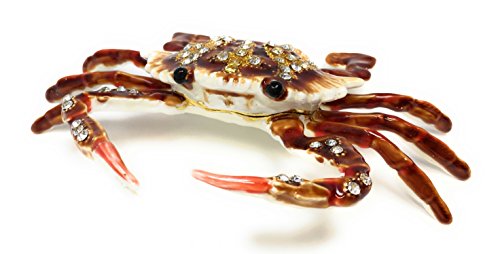 Enameled Crab Trinket Box by Kubla Craft, Accented with Crystals, 5.25W