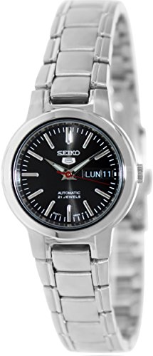 -. Binding : Watch -. Brand : Seiko -. Color : black -. Department : womens -. EAN : 0961613297549 -. Feature : Precise 21-jewel Japanese-automatic movement; functions without a battery; powers automatically with the movement of your arm / Durable mineral hardlex crystal; brushed and polished stainless steel case and bracelet / Day function in english and spanish; date function / Black dial with silver-tone hands and hour markers; luminous; red second hand / Water resistant to 99 feet (30 M): withstands rain and splashes of water, but not showering or submersion -. Label : Seiko -. Manufacturer : Seiko -. Model : SYME43 -. MPN : SYME43 -. PackageQuantity : 1 -. PartNumber : SYME43 -. ProductGroup : Watch -. ProductTypeName : WATCH -. Publisher : Seiko -. Studio : Seiko -. Title : Seiko Women's SYME43 Seiko 5 Automatic Black Dial Stainless Steel Watch -. UPC : 961613297549