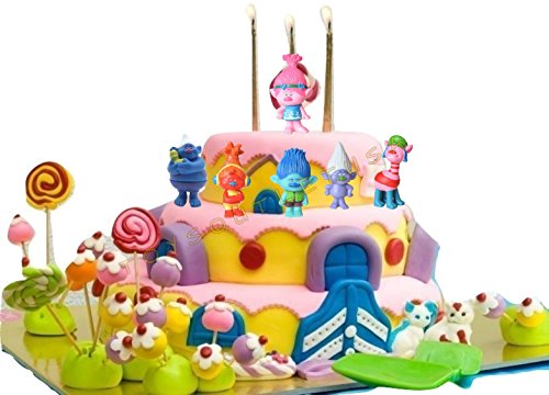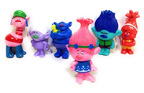 Trolls Figurines Poppy Playset Collectible Toys 6 pcs 3" tall + 3D Stickers by ToysOutlet_USA