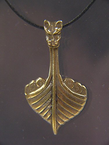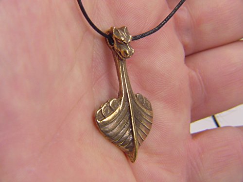 -. Title : Pewter with Bronze Patina Pendant Viking Ship Necklace Odin Thor Norse Viking