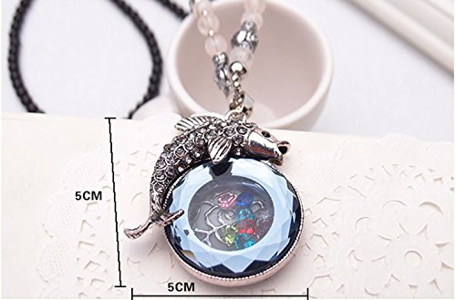 -. Title : Gorgeous Jewelry Ancient the Leaping Carp Hollow Glass Yellow and Black Buddha Beads Chain Necklace