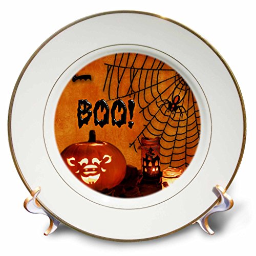 3dRose cp_52318_1 Boo Jack-O-Lantern, Bats and Spiders Happy Halloween Porcelain Plate, 8-Inch
