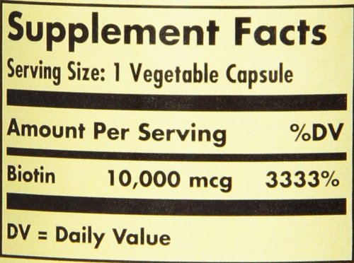 -. Binding : Health and Beauty -. Brand : Solgar -. Feature : 2 Bottles of 120 Capsules / Supports energy production in the body / Required for protein, carbohydrate, and fat metabolism / Suitable for Vegetarians -. Label : Solgar -. Manufacturer : Solgar -. PackageQuantity : 1 -. ProductGroup : Health and Beauty -. ProductTypeName : HEALTH_PERSONAL_CARE -. Publisher : Solgar -. Studio : Solgar -. Title : Solgar Biotin 10000 Mcg Vegetable Capsules