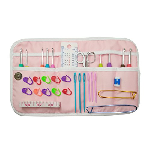 ORGANIZER BAG - Lightweight and durable case with 5 compartments to store and organize the crochet hooks and accessories making it convenient, portable and travel-ready - Magnetic button for quick and easy closing - High quality print design to help reduce long-term wear