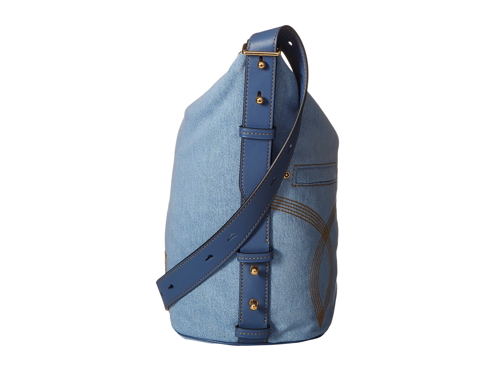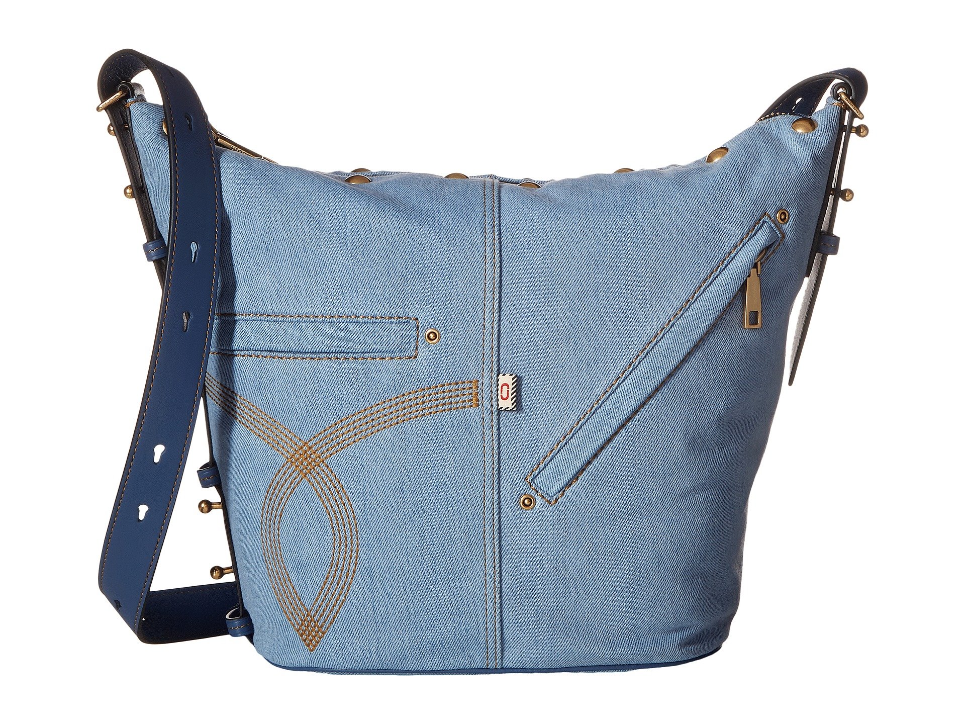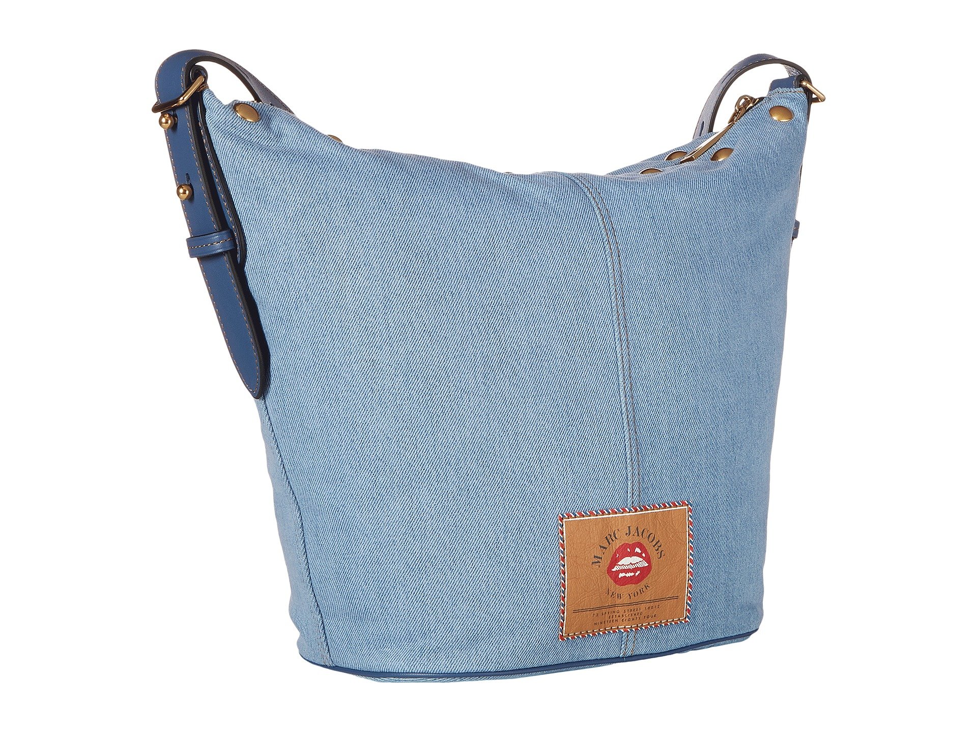 | Product Information SKU: #8932864Transform your handbag into anything you want it to be carrying the Marc Jacobs? Sling Denim Handbag. Bag made of colorful denim. Spacious top open design with full zipper closure. Adjustable shoulder strap. Playful stitching on a makeshift rear pocket of denim jeans featured in front for added flair. Decorative front exterior zipper pocket for added easy storage.Colorful brand name patch stitched on back exterior.Flat base provides upright structure.Spacious lined interior shows off back wall zipper pocket and dual slide pockets on front wall. Imported. This item may ship with an attached security tag. Merchandise returned without the original security tag attached or a damaged tag may not qualify for a refund.This product may have a manufacturer's warranty. Please visit the manufacturer's website or contact us at warranty@support.zappos.com for full manufacturer warranty details.Measurements: Bottom Width: 9 in Depth: 6 in Height: 12 in Strap Length: 41 in Strap Drop: 21 in Weight: 1 lb 3 oz |