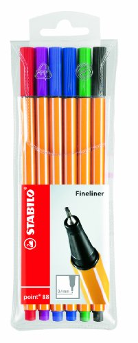 Stabilo Point 88 Fineliner Pens, 0.4 mm - 6-Color Wallet Set