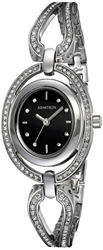 Armitron Women's 75/5473BKSV Swarovski Crystal Accented Silver-Tone Open Bangle Watch