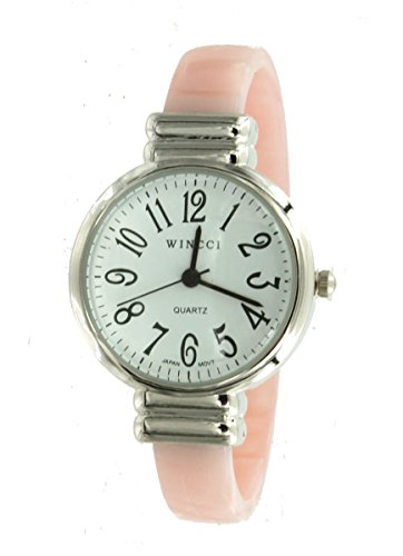 Women's Pink Silver Tone Bangle Cuff Watch