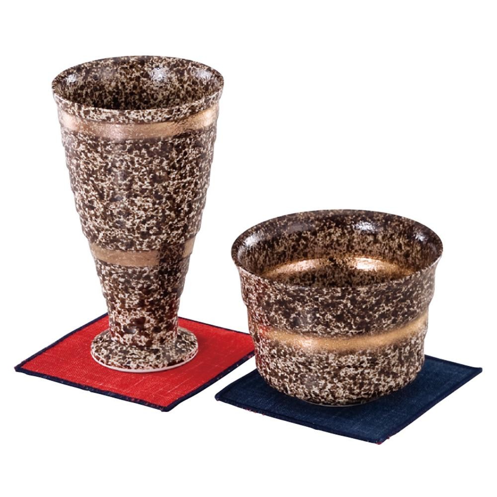 陶磁器製のビールグラスと焼酎グラス、コースターのセット。ギフトにもぴったりです。 |