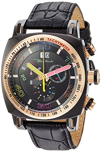 Ritmo Mundo Swiss Quartz Stainless Steel and Leather Casual Watch, Color Black (Model: 2221/15)