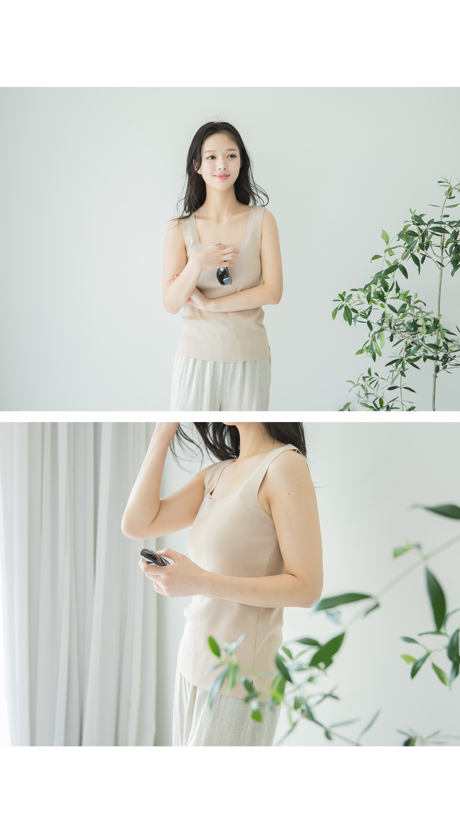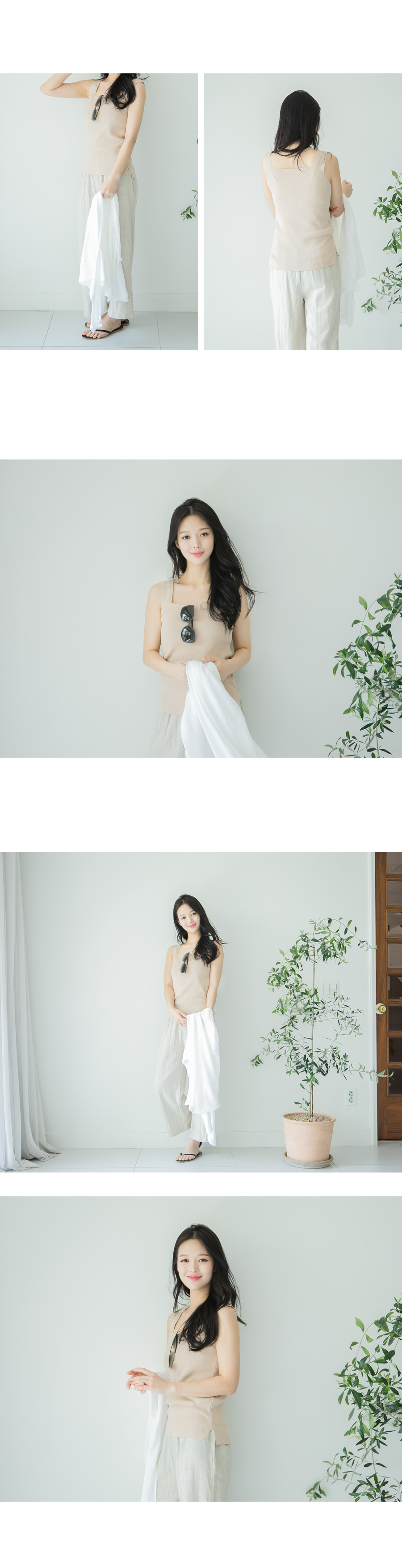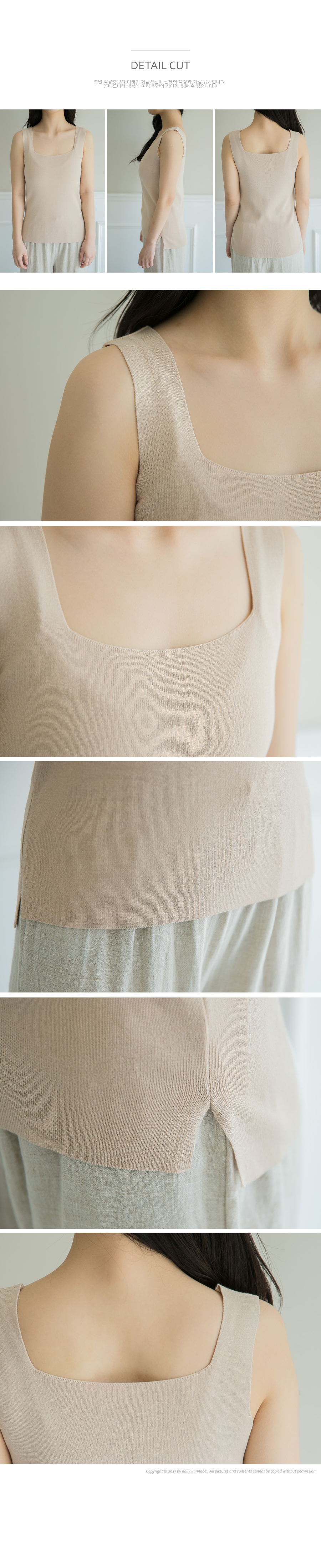 활용성 좋은 스퀘어 니트 슬리브리스 소개해 드릴게요~ 기본 민소매 니트구요. 사각 네크라인으로 영한 이미지를 주는 아이예요^^ 쫀쫀한 니트 짜임으로 슬림하게 바디를 감싸줘 날씬해 보이구요 신축성 좋아 착용감도 편안하답니다~