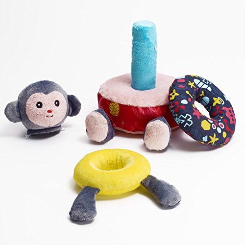 Stack and play with this funny little monkey. The playful Savanna Monkey Tactile Activity Stacker is covered in plush patterned fabrics, and includes two stacking rings and monkey head topper with embroidered facial features and crinkle paper ears.The Savanna Collection from Manhattan Toy is a unique collection of ultra-soft, developmental toys and gifts for ages 0-9 months. The Savanna Collection features bold colors and designs to instantly capture and hold baby's attention, with a variety of play patterns offering tactile and auditory features to help your baby discover the world around them. For over 30 years, Manhattan Toy has been making award winning, high quality, visually appealing toys for babies, toddlers and kids. Manhattan Toy offers 500 exclusive, original product designs distributed and sold worldwide through specialty retail stores, catalogs and websites. All of our products, from the newest concepts to our time-tested classics, are innovatively designed to inspire imaginative play and delight our customers large and small.Feature