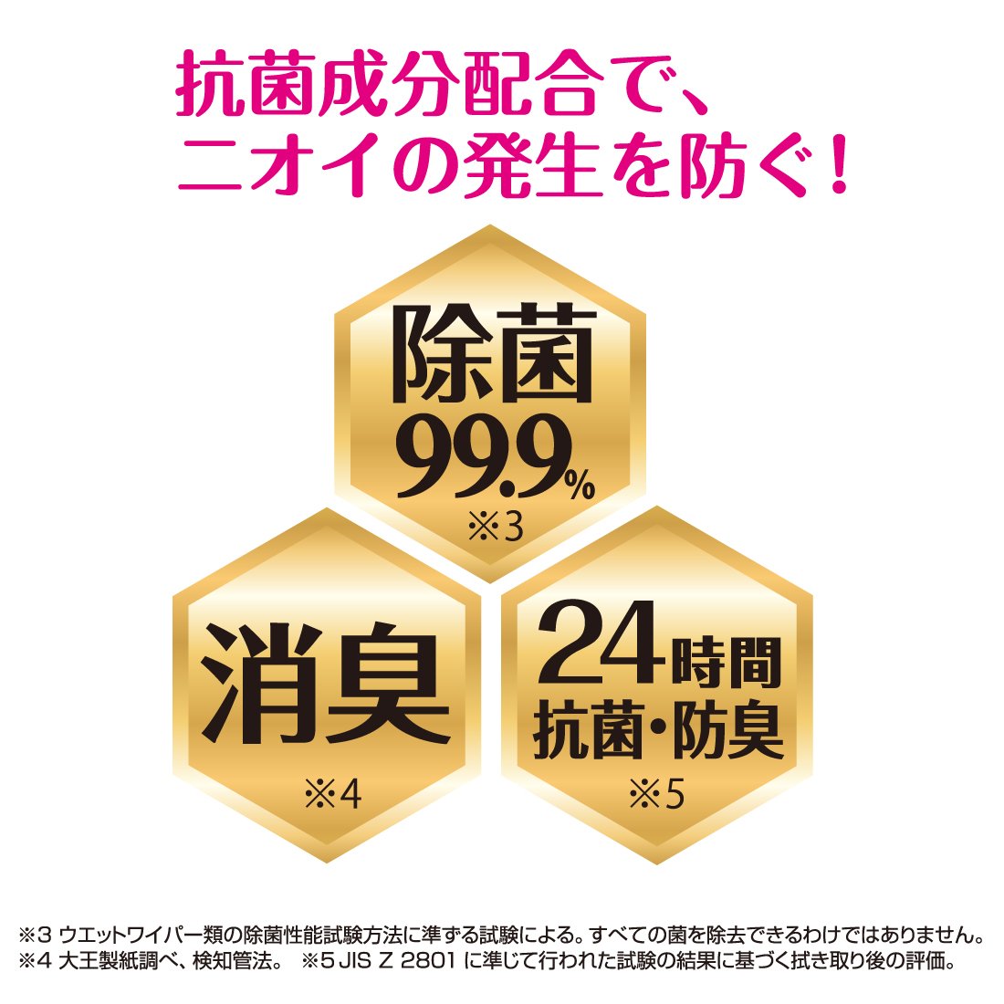 ● Disinfection 99.9% (* 2) & Deodorant (* 3) & 24 hours Antimicrobial and deodorant (* 4)