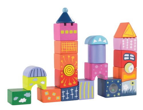 Bright rainbow colors and patterns add to the fun of block building in this set of maple blocks