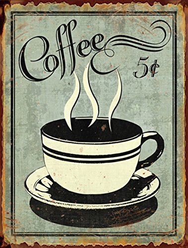 Barnyard Designs 5 Cent Coffee Retro Vintage Tin Bar Sign Country Home Decor 10" x 13"